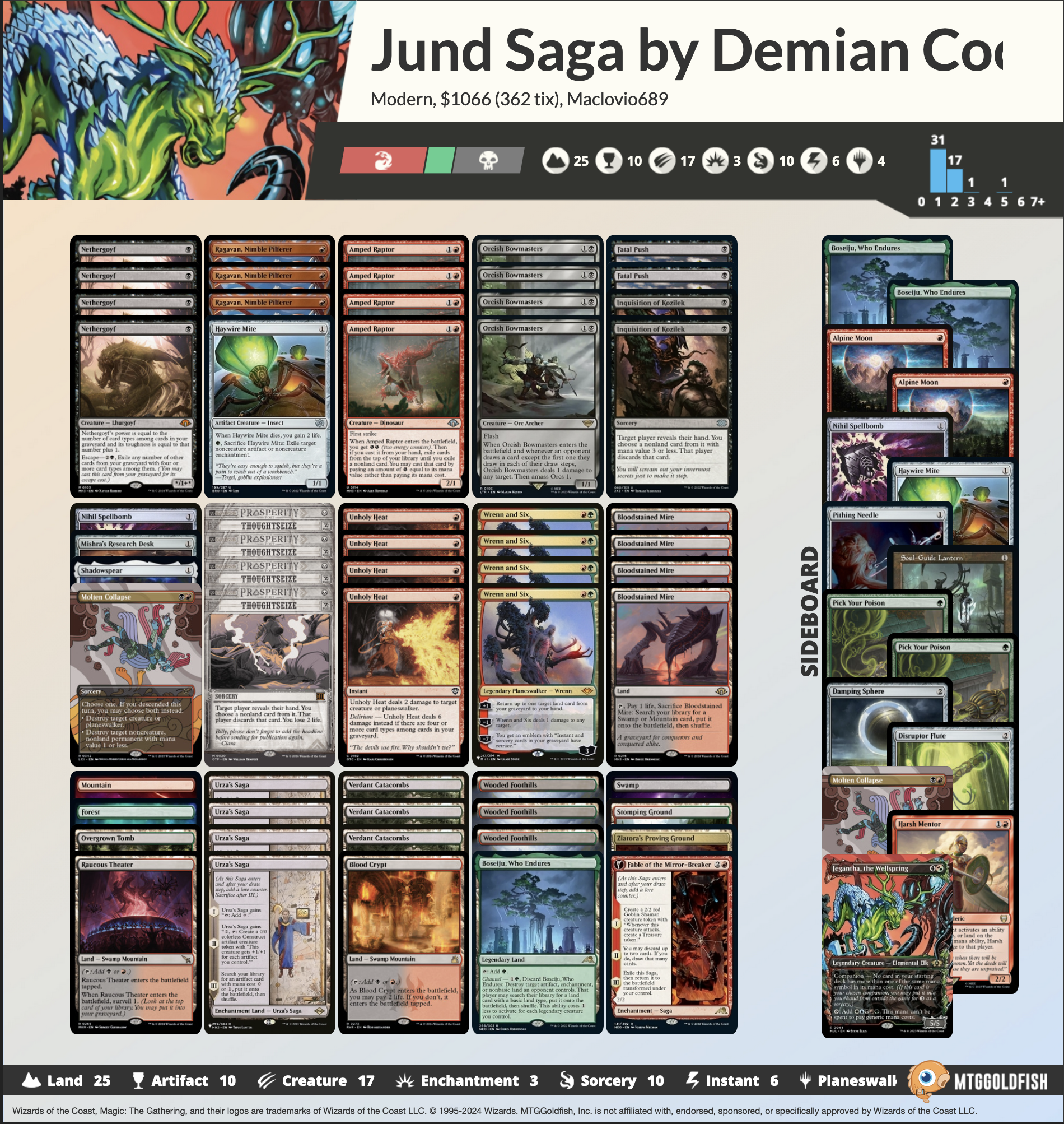 Ich konnte es wirklich nicht lassen, dir meine neueste Version meines Lieblingsdecks aller Zeiten zu zeigen. Also, hier ist es – Jund Saga mit Baby-Goyf. Für diejenigen von euch, die tatsächlich alles gelesen haben, werde ich euch die Durchsicht jeder Kartenauswahl ersparen. Ihr wisst, was dieses Deck kann... Jund sie raus!
