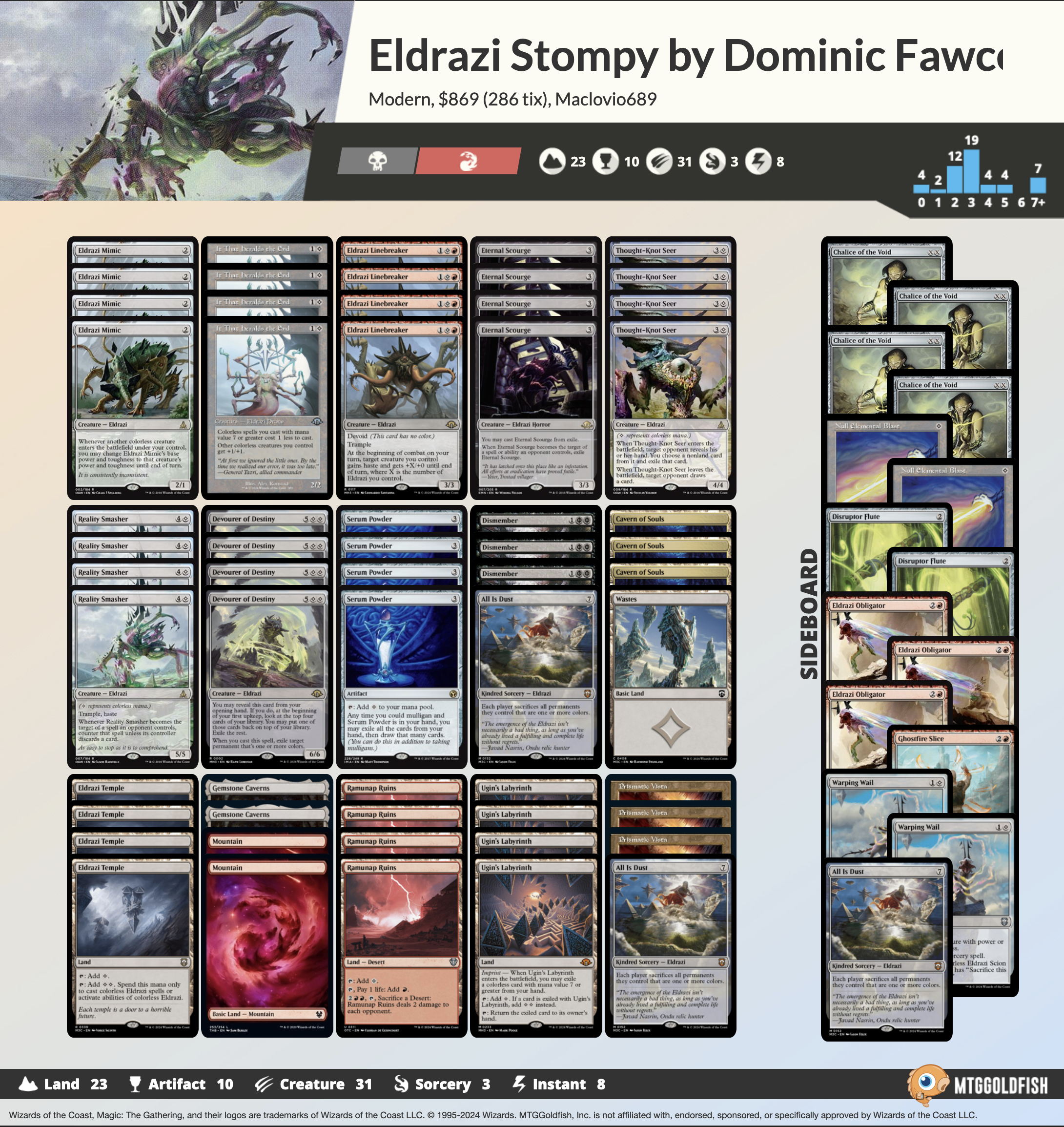 Die Eldrazis sind zurück! Da sie eines der Hauptthemen von MH3 sind, ist es fast sicher, dass jedermanns Lieblings-Magic-Aliens wieder Teil der Modern-Meta sein werden. Diese Liste stammt von Dominic Fawcett und ist eine All-in-Version eines Eldrazi-Aggro-Decks. Wir können einige bekannte "Gesichter" in der Liste sehen: Eldrazi Mimic, Thought-Knot Seer und Reality Smasher, die warme und flauschige Erinnerungen an "Eldrazi Winter" wecken. Glücklicherweise ist Eye of Ugin immer noch verboten... oder doch nicht?!