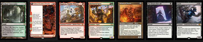 Bei der Auswahl der Fetchlands müssen wir auf unsere Hauptfarben Schwarz und Rot achten. Außerdem wollen wir in der Lage sein, sowohl unsere Triome als auch unsere Basics mit so vielen unserer Fetchlands wie möglich zu holen. Das hat mich dazu gebracht, die folgende Kombination zu wählen: