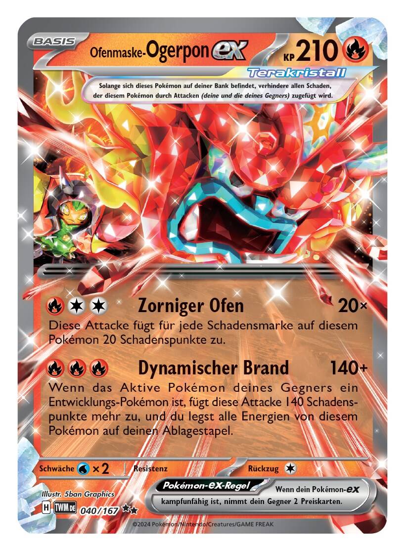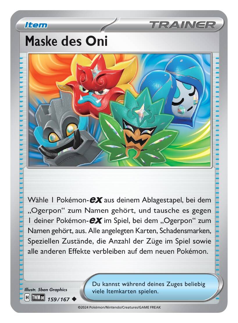 Das legendäre Pokémon Ogerpon erscheint in dieser Erweiterung in vier verschiedenen Formen als Pokémon-ex – jeweils vom Typ Pflanze, Feuer, Wasser und Kampf – basierend auf seinen vier Masken. Spieler können mit verschiedenen Typen von Ogerpon-ex kämpfen, unterstützt durch die neue Itemkarte "Maske des Oni", die es ermöglicht, ein Ogerpon-ex im Spiel gegen ein Anderes aus dem Ablagestapel zu tauschen. Anlässlich des Debüts von Ogerpon wurden sechs neue Karten vorgestellt, darunter jede Maske und die Maske des Oni.