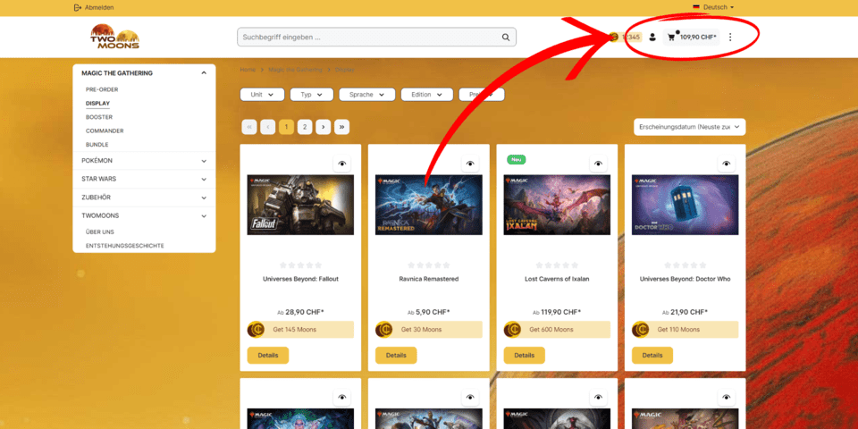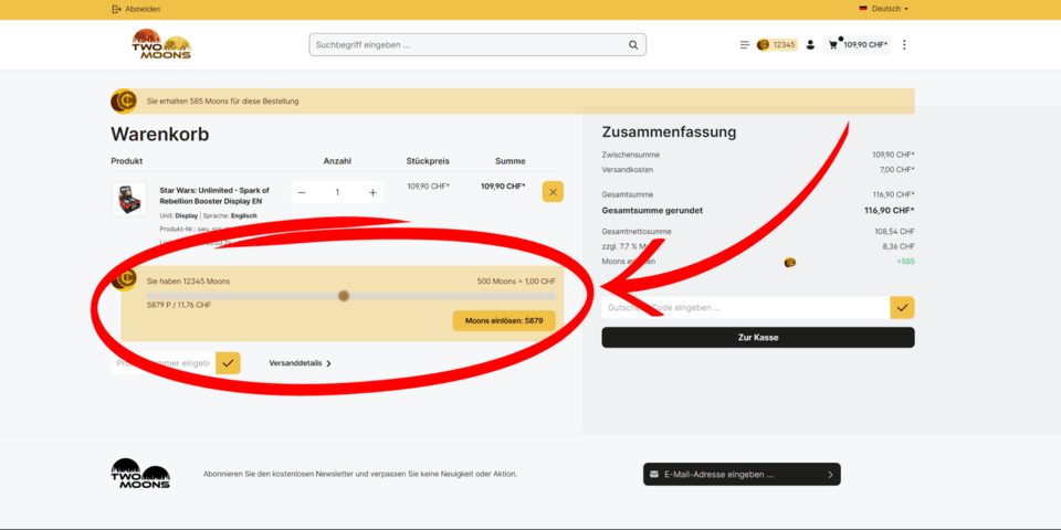 Moons können nur in unserem Online-Shop eingelöst werden und werden nicht bar ausgezahlt.